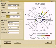 本界面亦提供不同時間週期的氣象資料統計分析功能,統計方式包含平均值、最大值、最小值等三種,統計項目亦可經由使用者任意指定,能夠符合環境影響評估的需求,大幅降低作業的工時。